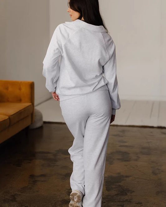 LUNÉA — Ensemble Décontracté Zippé Pull & Pantalon Uni