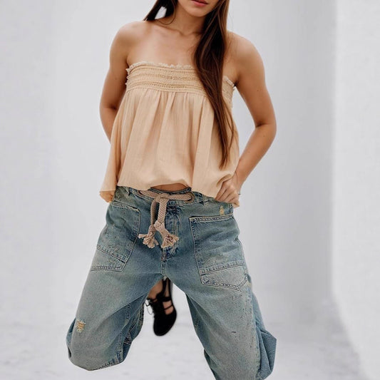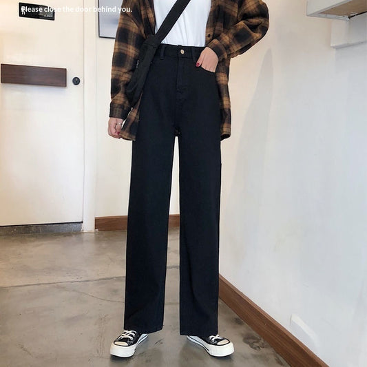 Jean Denim Femme Taille Haute – Coupe Droite Large Élégante
