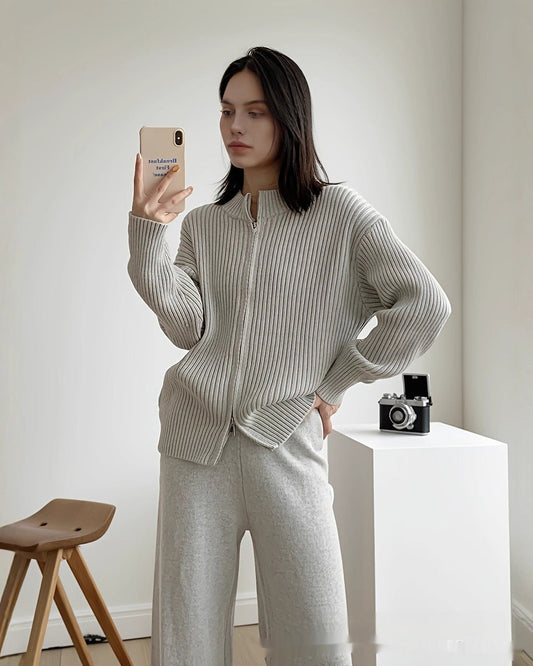 LUNÉA — Ensemble Décontracté Zippé Pull & Pantalon Uni