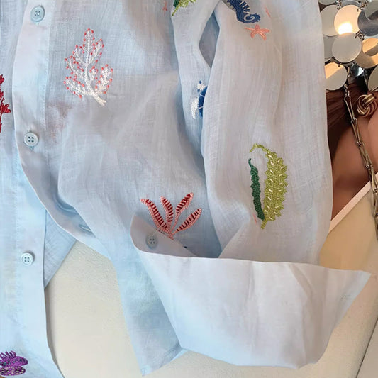 En PromotionChemise Légère – Broderies Florales & Anti-UV