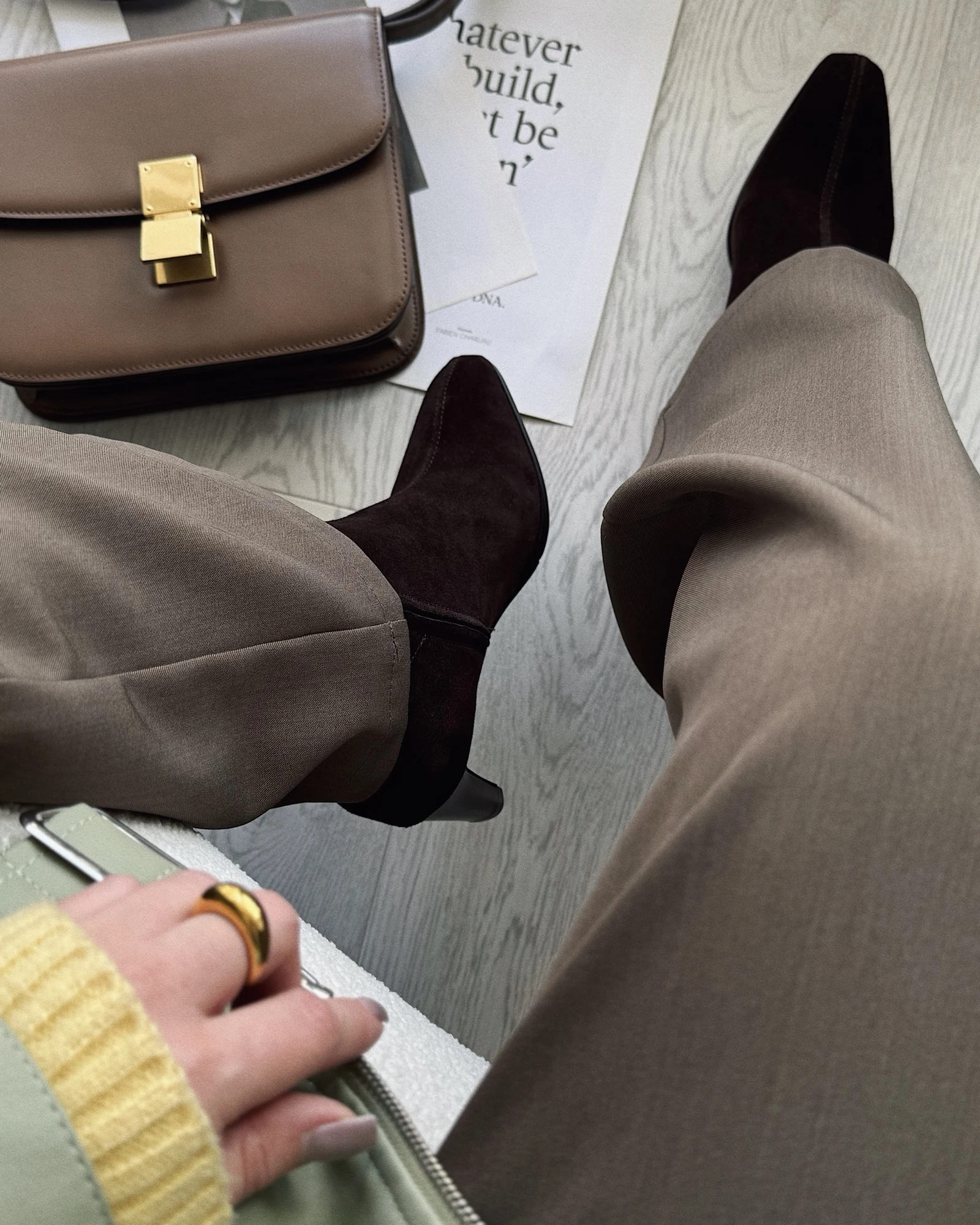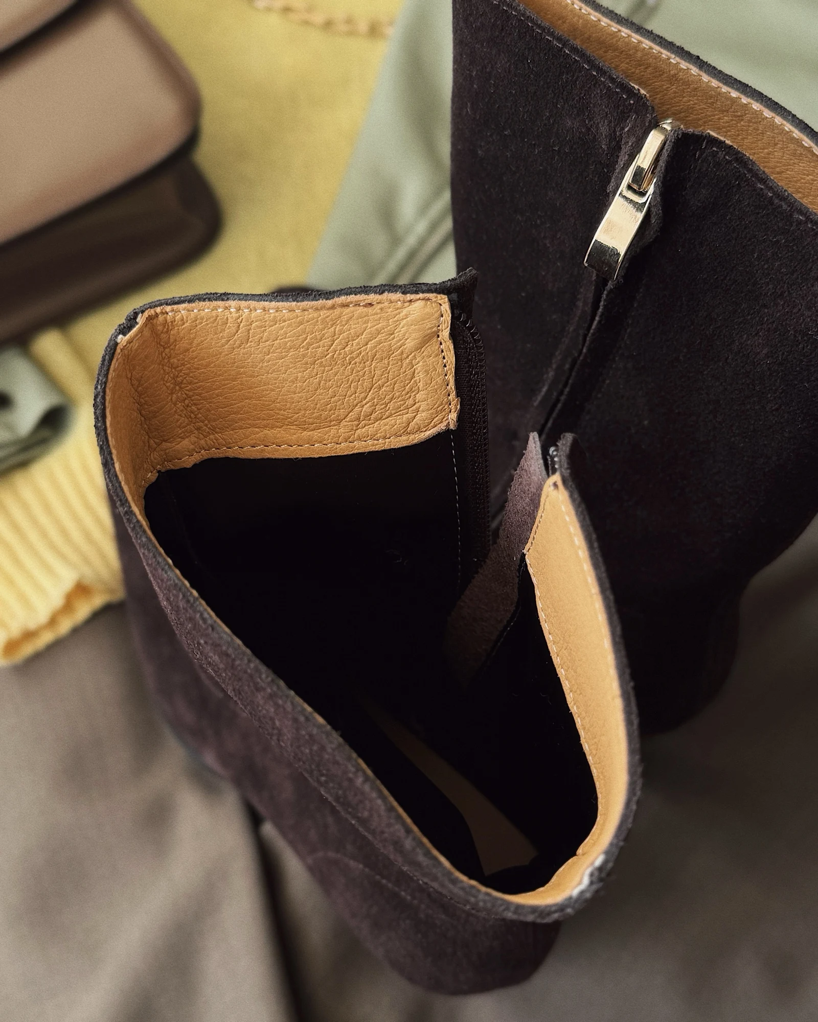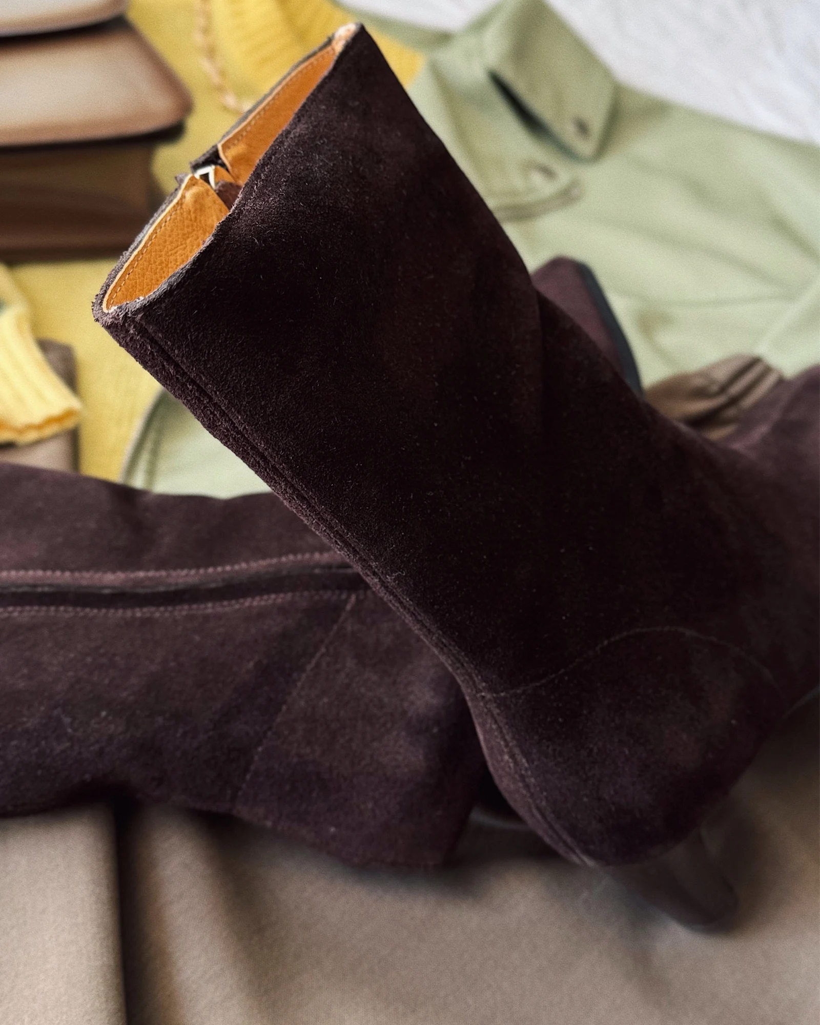 Ces bottines en cuir de vachette incarnent le chic intemporel. Avec leur couleur unie disponible en marron ou en vert, elles ajoutent une touche de raffinement à toutes vos tenues.