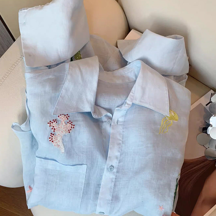 Apportez une touche de fraîcheur à votre garde-robe avec cette chemise légère en coton et lin. Ses broderies florales délicates ajoutent une note d’élégance discrète à un style casual inspiré des tendances japonaises et coréennes.