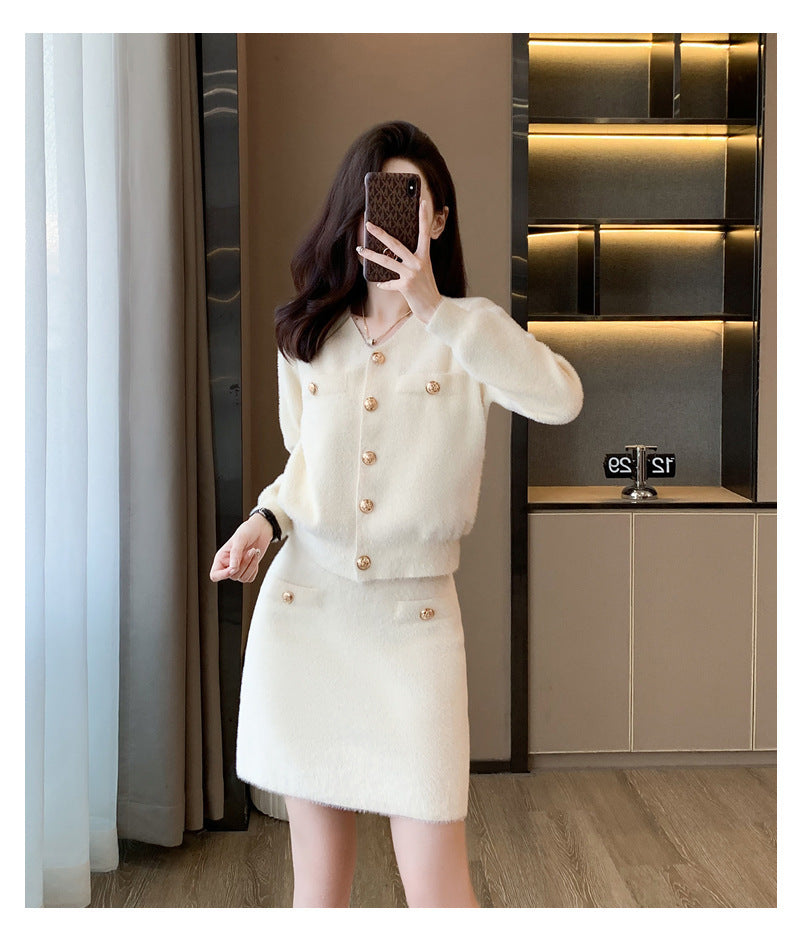 La jupe courte et le top à manches longues s’associent harmonieusement pour créer une silhouette équilibrée et féminine, facile à accessoiriser selon vos envies.