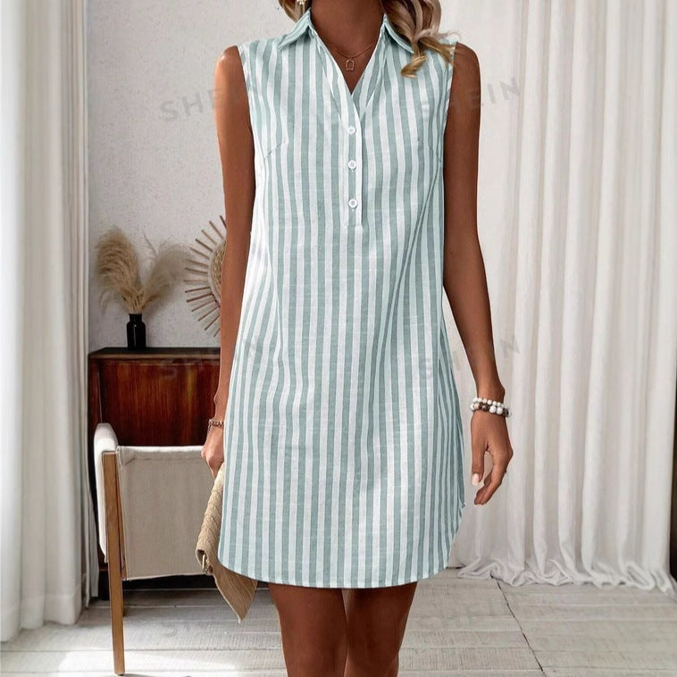 Robe Chemise Sans Manches – Col V & Boutons
